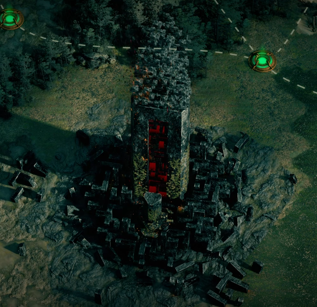 - 탑을 완료하면 주위의 넓은 지역이 드러남