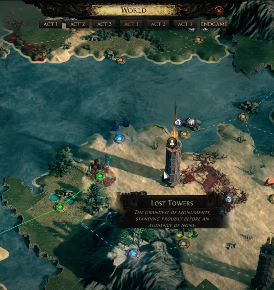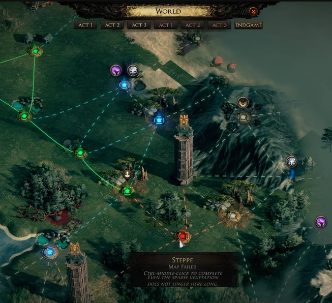 ACT를 다 진행하게 되면 엔드게임으로 넘어가는데 POE1의 지도와 같은 시스템이 존재한다